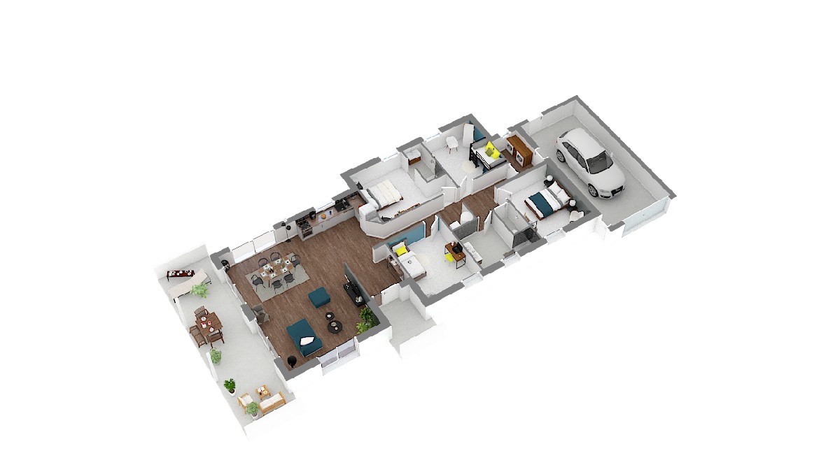 C’est une maison coup de cœur. Si vous craquez, ce sera celle-là et aucune autre. Sa superficie modulable vous permettra de la choisir en fonction de la taille de votre famille, entre 90 et 135 m². Vous aimerez sa pergola structurée, offrant une dose d’intimité et un esthétisme incontestable. La porte d’entrée en renfoncement sous porche offre un côté pratique que vous apprécierez l’hiver. Ses façades modelées permettent une répartition originale de l’espace intérieur. Les généreuses ouvertures lui assurent une parfaite luminosité. Si vous souhaitez tout savoir sur ce modèle incroyable, nous sommes à votre service pour vous renseigner.